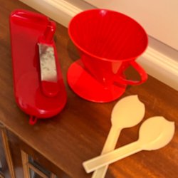 Nilsjohan Röd Clara Burk-Öppnare och Melitta Kaffefilterhållare