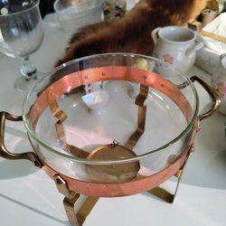 Pyrex Ugnsform Koppar Ställning Form Glas Vintage