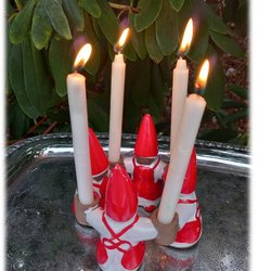 Kayene ljusstake i keramik tomtar i ring 4 ljus Etikettmärkt