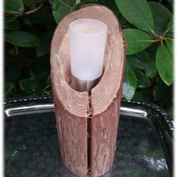 Ljushållare i form av trästam med frostat ljushållare med led värmeljus i