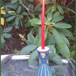 Ljusstake med pojke i folkdräkt som håller två ljus keramik allmoge Fint skick