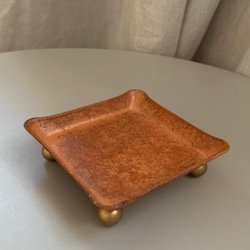 Ljusstake för blockljus, kopparfärg och fötter i mässingfärg