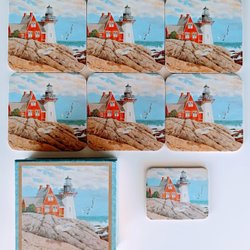 6 st Fyrtorn Coasters Glasunderlägg + Kylskåpsmagnet Marinmotiv