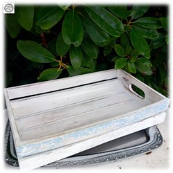 Underbar vit lantlig lite sliten shabby chic bricka ljusblå kant Fint skick