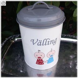 Charmig Form Living plåtburk för Välling med vackert motiv Fint skick