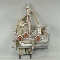Klädhängare - Trä/Drivved - 2 Krokar i smide - Kust-tema - H 55 cm