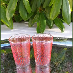 Paret retro saftglas räfflade på diagonalen 3 streck numrering under fint skick