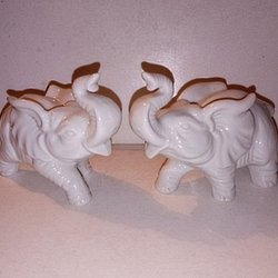 2st helvita porslinsfigurer Elefanter Höjd ca 10,5cm Längd ca 14cm