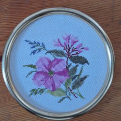 Handbroderad tavla med ram