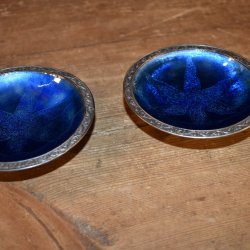2 st fina skålar i metall och emalj
