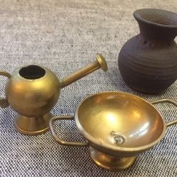 Miniatyrer Lerkruka Kanna + Skål Mässing
