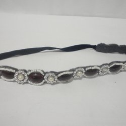 Vacker Hårband med stenar ,pärlor och svart resår