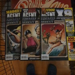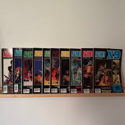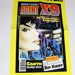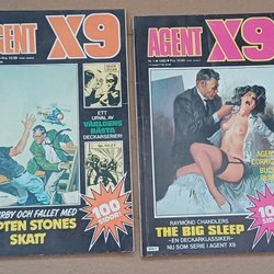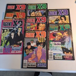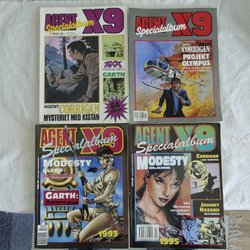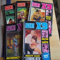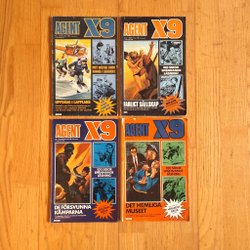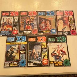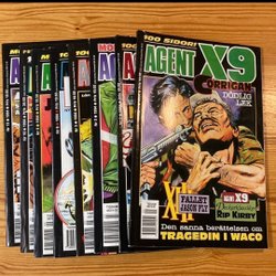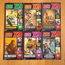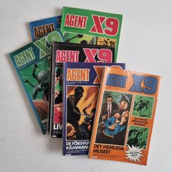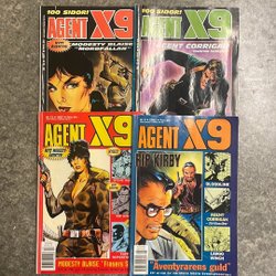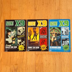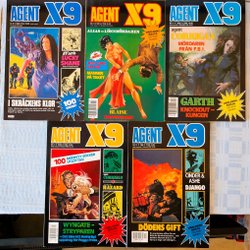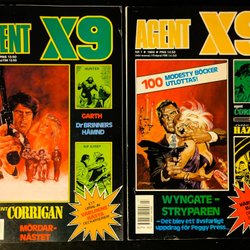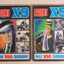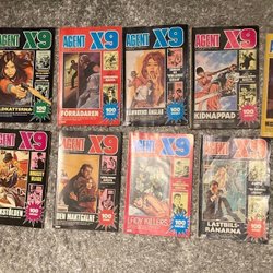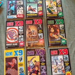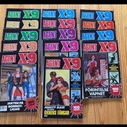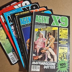 Dyk ner i en värld av hemliga uppdrag, farliga skurkar och oförglömliga äventyr med Agent X9 serietidningar. Sedan dess debut har Agent X9 varit i framkant av spännings- och äventyrsgenren, och skapat en stark följarskara av hängivna läsare genom åren. Med dess fängslande berättelser och levande illustrationer har Agent X9 blivit mer än bara en serietidning – den är en institution inom agentgenren. Varje upplaga erbjuder läsaren en biljett till en värld av internationellt spionage, där varje sida överskrider den nästa i spänning. Agent X9 har gett oss många minnesvärda stunder genom klassiska titlar som "De förrädiska diamanterna" och "Jakten på den försvunna skatten". Dessa tidningar, rika på action och intriger, har gjort Agent X9 till en av de mest älskade serietidningarna genom tiderna. Med en perfekt blandning av spänning, drama och äventyr har Agent X9 alltid lyckats hålla sina läsare på tåspetsarna, ivriga att veta vad som kommer härnäst.