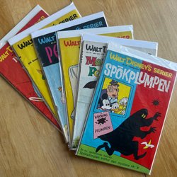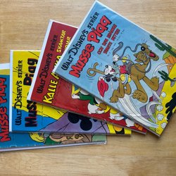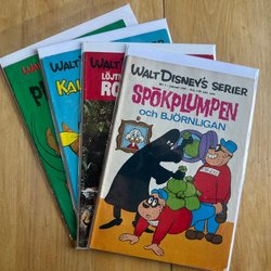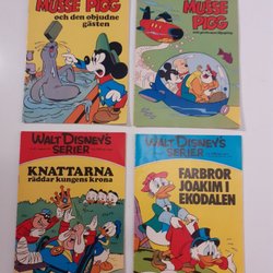 - Serietidningar med karaktärer som Musse Pigg, Långben och Pluto