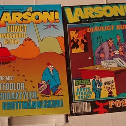 Tradera erbjuder mer än bara Larson. För de som vill bredda sin serietidningssamling eller helt enkelt njuta av andra humoristiska verk, är vårt utbud av humor och buskis serietidningar helt rätt plats att leta på. Förutom Larson kan läsare förlora sig i Ernies värld, skratta åt Knasens ständiga upptåg, följa med på 91:ans soldatäventyr eller ta del av Hälges skogsbaserade skämt. Varje serie har sin egen charm, sitt unika perspektiv, men alla delar samma kärna av ren och skär underhållning.