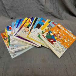 Även om Åsa-Nisse håller en särskild plats i mångas hjärtan, erbjuder Traderas utbud av serietidningar inom humor och buskis massor av andra skrattfyllda serier. Utforska kända svenska klassiker som 91:an, Larson, Knasen och Hälge - det finns något för alla smaker och skrattgaranti är nästan alltid säkerställd.