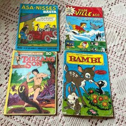 Serietidningar: Åsa-Nisses Bästa, Vilde Ville & Co, Tarzans Son, Bambi