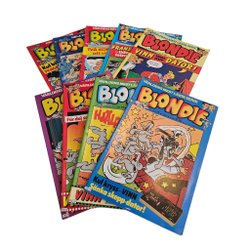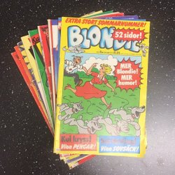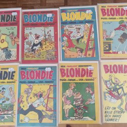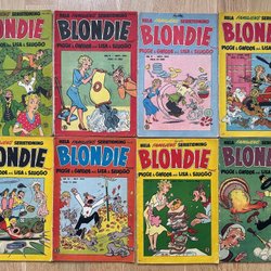 Blondie är inte bara en serie; det är en ikon. Sedan början av 1900-talet har Blondie serietidningar charmat sina läsare med skarpa skämt, hjärtliga skratt och insikter i vardagslivet. Från Dagwoods eviga hunger och komiska matlagningsolyckor, till Blondies kloka och ibland tålmodiga perspektiv på livet, berättar varje sida en historia som är både tidlös och aktuell. Deras äventyr har en särskild plats i många hjärtan, eftersom de påminner oss om skönheten och humorn i de enkla tingen.