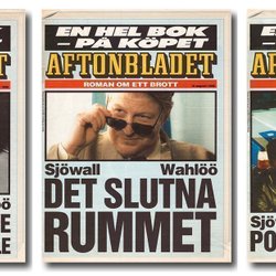 Tre kriminalromaner av Sjöwall-Wahlöö i kvällstidningsformat