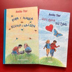 PIRR I MAGEN KLUMP I HALSEN + RÖTT HJÄRTA BLÅ FJÄRIL Annika Thor