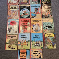 • Samlarobjekt som Tintin-figurer och memorabilia
