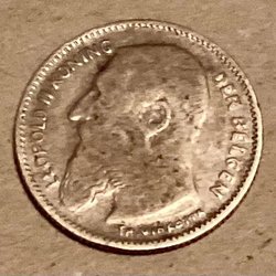 Belgie 1 franc 1880 med fullt kors på krona