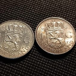 2 x 1 gulden (NL) 1956 & 1957, fint skick. 72% silver