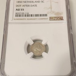 Silver 5 cent 1850 Netherlands - AU 55 Graded by NGC