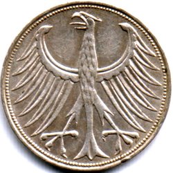 Tyskland - Stort silvermynt, 5 Deutsche Mark 1961 J