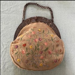 Äldre liten handväska i korsstygnsbroderat tyg