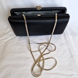 Vintage Enzo Angiolini Black Satin Box Clutch Silver Chain Strap