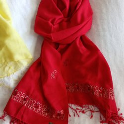 ***** Silk pashmina stor röd sjal shawl fr Nepal fräsch fin elegant exklusiv ***