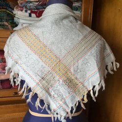 Ny hemstickad flerfärgad sjal i ett blandgarn