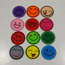 12st Tygmärken - Emoji - Smileys - Storlek 4,5cm - Alla Olika - Se Beskrivning
