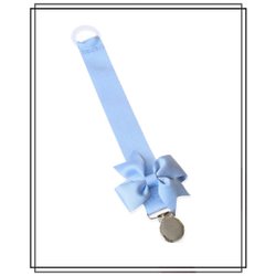 Ljusblå napphållare med ljusblå rosett och silverfärgat clip dop doppresent