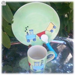 Underbart matset från P&P handmålad kopp tallrik och en babybjörn sked i turkos