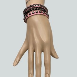 Rosa Nitarmband med Pyramidnitar, 1 rad Kupolnitar & 1 Kedja