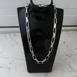 ett rostfri stål färgad halsband, 50 cm långt och försett med hummerklo lås.