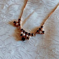 Kedja i äkta 18 karat guld. odlade pärlor, granater.42cm.Ny fr äld guldsmedsaff