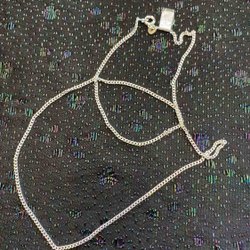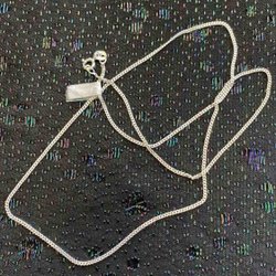 ett silverfärgad rostfritt halsband , 50 cm långt och försett med hummerklo lås