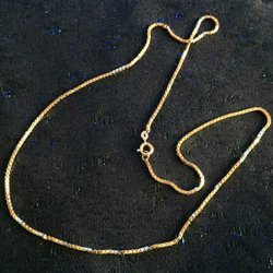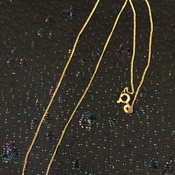 ett guldfärgad rostfritt halsband , 50 cm långt och försett med hummerklo lås