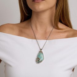 Halskedja med hänge ( lavasten? ) silver 78,6g, L. 42,5 cm. 23095, L 13589