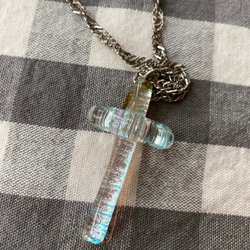 Halsband, handgjort kors i glas plus metallkedja