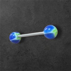 Tungpiercing i Stål med Blå & Grøn Marble – Stilren & Bekväm