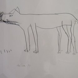 NINA NILSSON, TUSCH "HUND" 1994, INRAMAD, 80 X 64 CM, AVHÄMTNING STOCKHOLM