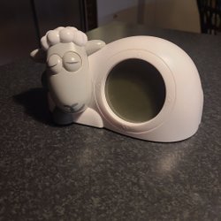 Cylinderformad klock radio av märket AKAI med projector på vägg/tak
