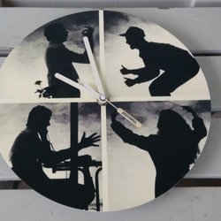 Väggklocka i trä med motiv