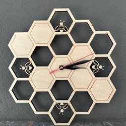 Dekorativ väggklocka med bi-tema; i trä