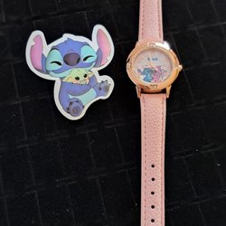Stitch & Angel Armbandsur med Rosa Läderarmband