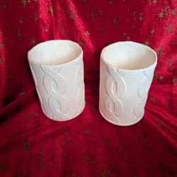 Partylite hög vit keramik ljusstake cylinder reliefmönster